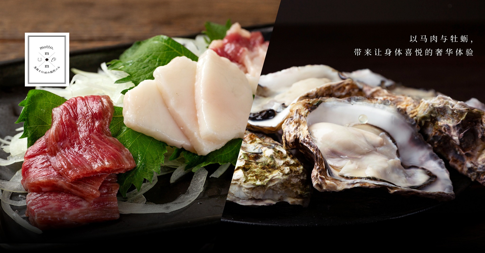 本店提供多种丰富的套餐选择,无论是 每位5,500日圆(含税)即可享受牡蛎吃到饱 的方案,或是以牡蛎与马肉为主餐的精选套餐,还有创意料理吃到饱的方案等,都能让您尽情享用 motto. 引以为傲的招牌美味。针对团体聚餐,也可依预算客制化安排套餐内容。请依您的用餐场景与喜好,挑选最合适的一套料理体验。